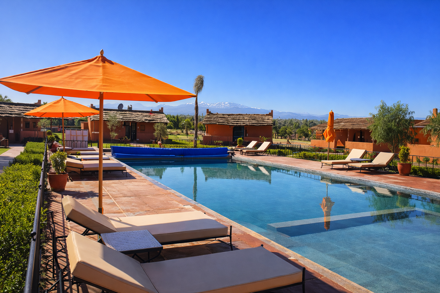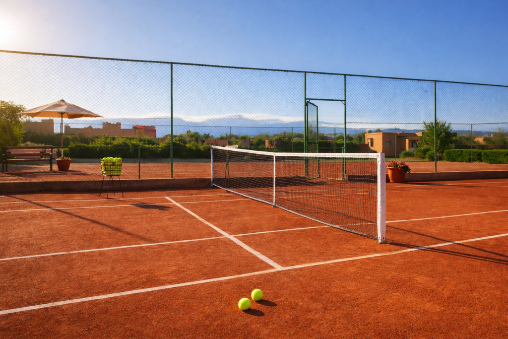 Situé à seulement 30 minutes de l’aéroport de Marrakech Menara, le domaine bénéficie d’un emplacement privilégié, entre les montagnes majestueuses de l’Atlas et la vibrante ville de Marrakech. Cette situation idéale permet d’alterner facilement découvertes culturelles, balades en pleine nature et moments de repos en famille.